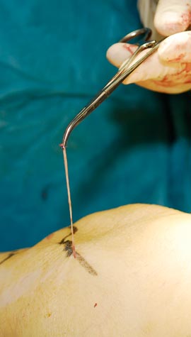 Bei der Crossektomie wird die betroffene Stammvene über einen kleinen Schnitt in der Leiste oder Kniekehle am Eintrittspunkt in die tiefe Vene durchtrennt. Die Versorgung der hier in die Krampfader einmündenden seitlichen Verzweigungen der Vene findet gleichzeitig statt, damit hier keine neuen Krampfadern entstehen.